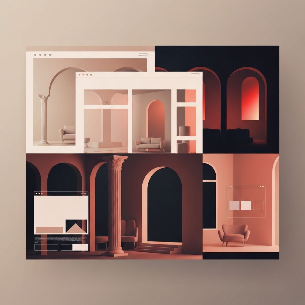 Several layout patterns recur in successful interior web design. Full-bleed hero images with minimal overlay text invite users into a space immediately. Asymmetrical grids on portfolio pages echo gallery walls and prevent visual monotony. Split-screen layouts pair a single image with a short paragraph, mimicking the rhythm of a coffee table book.
