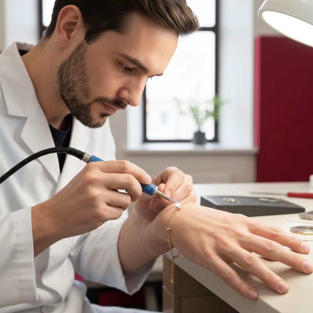 After the chain is cut to the correct length, the jeweler uses a specialized micro-welding tool, often called a pulse-arc welder, to fuse the two ends of the chain together. This creates a seamless connection that is virtually invisible to the naked eye. The welding process takes only a fraction of a second and produces a tiny, controlled spark. You may feel a slight warmth near the weld point, but the process is completely painless and does not touch your skin.